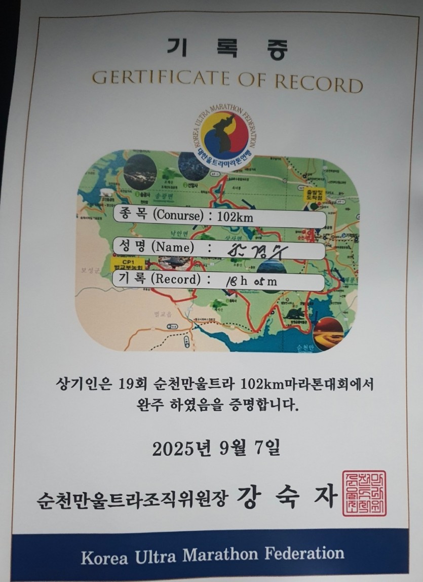 그래도 사진도 찍어주고, 완주 기록증(시간외)도 받으니 그나마 완주에 대한 위안이 되어 줍니다.